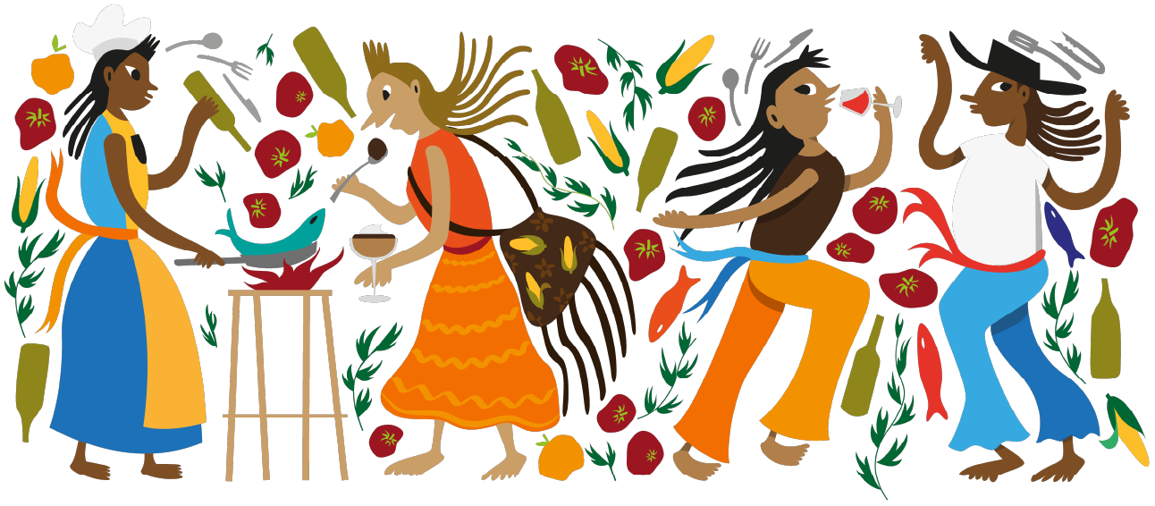 While researching this style, I noticed that most of its visual storytelling focused on the natural environment and people, but rarely on the culinary experience. This presented an opportunity to explore the Tenangos visual language through a culinary lens—creating illustrations that emphasised food, drink, movement, and celebration. This approach allowed the identity to feel culturally referential while remaining unique to Sophia’s personal experience and the free-spirited, intimate setting of Sauced Nashville.
